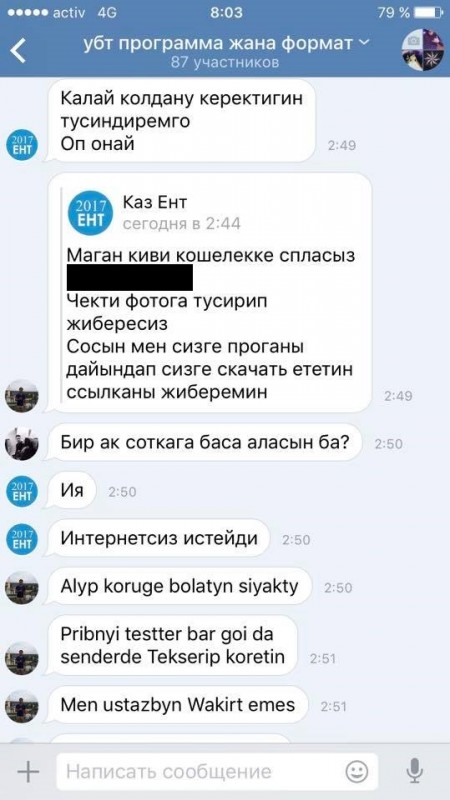 "Знает ли Министерство образования и науки о том, что в социальных сетях распространяется некое приложение, которое помогает обмануть национальную систему тестирования и якобы набрать хорошие баллы? Попахивает мошенничеством. Рекомендую изучить информацию и принять меры", - написал Дидар Марданов и приложил скриншоты.