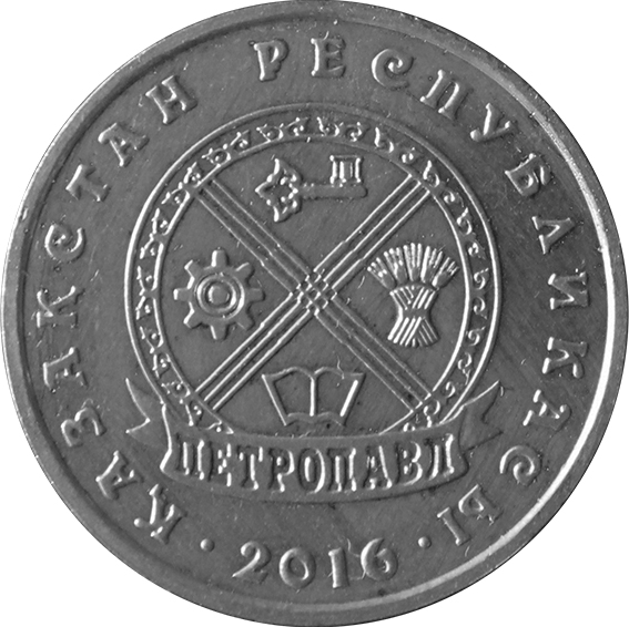 На оборотной стороне монеты "Петропавл" в центральной части изображен герб города Петропавловска. По окружности расположены надпись "ҚАЗАҚСТАН РЕСПУБЛИКАСЫ" на государственном языке, число "2016", обозначающее год чеканки монеты, и выступающий кант. Тираж – 50 тысяч штук.