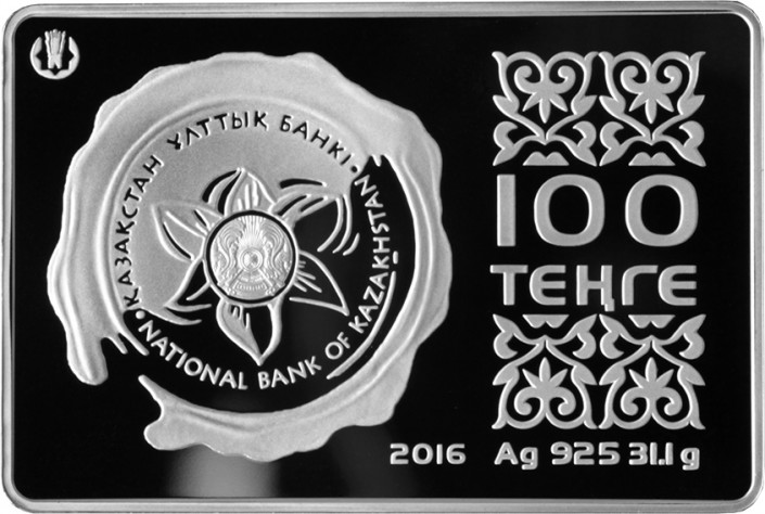 На лицевой стороне (аверсе) монеты изображен стилизованный цветок, выполненный в обрамлении сургучной печати, на которой по окружности расположены надписи "ҚАЗАҚСТАН ҰЛТТЫҚ БАНКІ" на государственном языке и "NATIONAL BANK OF KAZAKHSTAN" на английском языке. В центре цветка расположен герб Республики Казахстан. В правой части монеты – орнаментальная розетка, надпись "100 ТЕҢГЕ", обозначающая номинал монеты, число "2016", обозначающее год чеканки, и надпись "Ag 925 31.1 g", обозначающая металл, из которого изготовлена монета, его пробу и массу. В левой части – логотип Национального Банка Республики Казахстан.