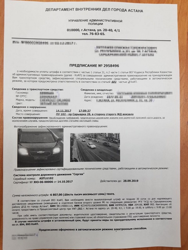 В ДВД Астаны также подтвердили эту информацию, сообщив, что на данный момент обработано порядка 12 тысяч нарушений, из которых уже более трех тысяч направлено по адресам. Также был продемонстрирован экземпляр предписания, которые направляются нарушителям.