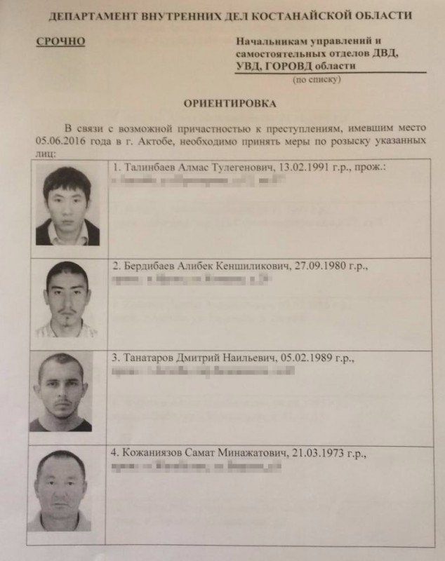В МВД РК прокомментировали распространенные в социальных сетях и мессенджерах ориентировок, разыскиваемых в Актобе, передает корреспондент Tengrinews.kz. 5 июня в Актобе произошел теракт.