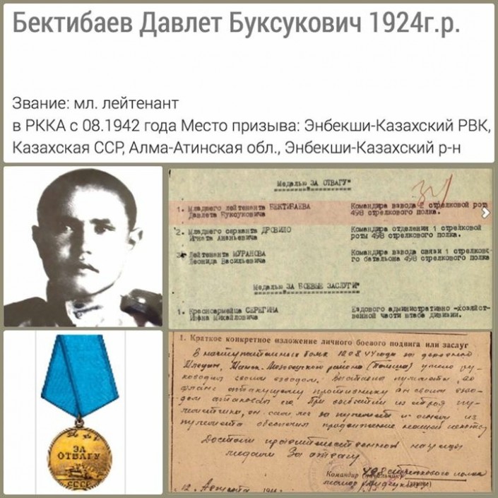 В военкомате Давлету Бектибаеву предлагали остаться переводчиком на курсах молодого бойца, но молодой парень рвался на фронт. Худощавый, невысокого роста он отправился биться с немецко-фашистскими захватчиками.