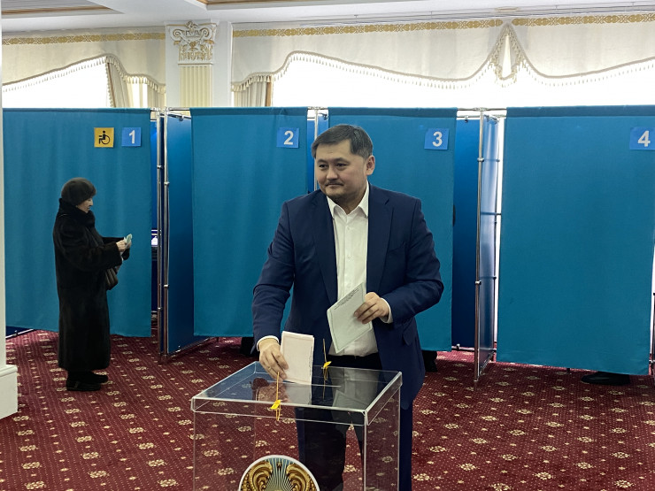 Саясат Нурбек проголосовал на выборах на участке в Национальной библиотеке в Астане.