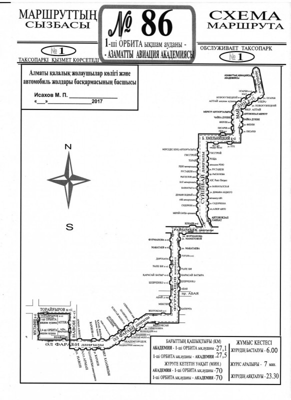 Кроме того, сообщается, что в связи с дублированием автобусного маршрута № 86 на участке от проспекта Суюнбая до микрорайона "Горный Гигант" внесены изменения в схему маршрута № 86.