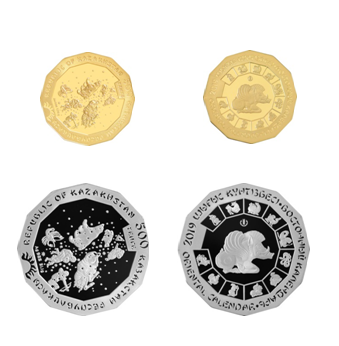 Идея двенадцатигранной монеты заключается в ежегодной смене изображения символа года путем перемещения его с внутреннего канта в центр монеты. Персонажи календаря выполнены в пластике космогонических представлений народов Евразии.