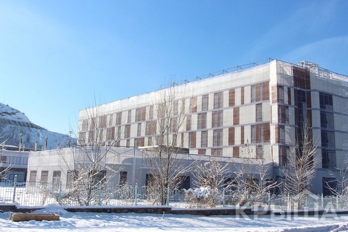 Недостроенное здание, расположенное по проспекту Аль-Фараби, дом 128а, напротив международного комплекса лыжных трамплинов "Сункар", завесили тентом с нарисованными на нем дверями, окнами и даже бликами на них. Издалека строение выглядит как полностью законченное, но, подойдя ближе, можно увидеть скрытые под тканью строительные леса.