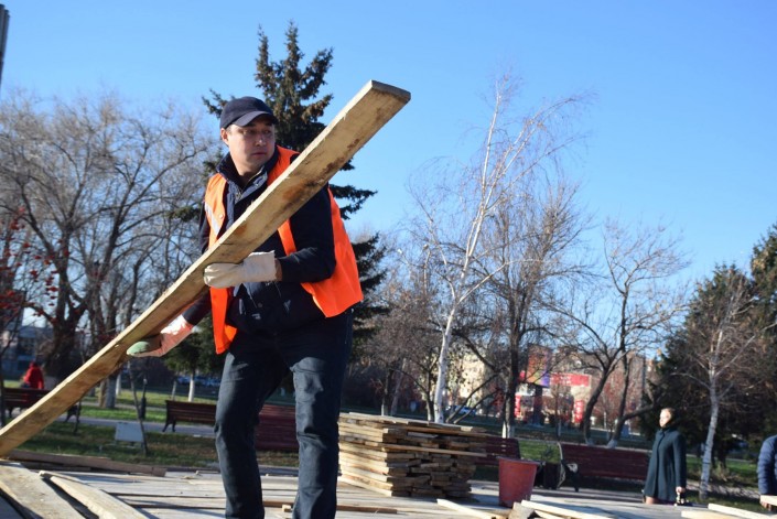 Отмечается, что замакима вместе с бригадой рабочих занялся подготовкой фонтана на площади Республики к зимнему периоду. Это очистка фонтана и последующая консервация объекта к зиме.