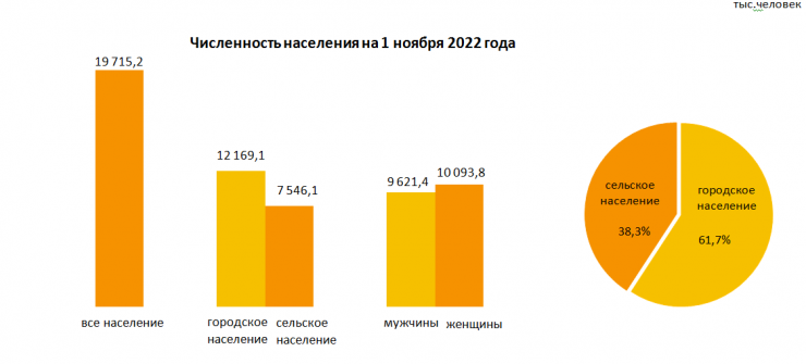 Естественный прирост населения республики за январь - октябрь 2022 года по сравнению с январем - октябрем прошлого года (222,3 тысячи человек) снизился на 0,6 процента и составил 221 тысячу человек. Общий коэффициент естественного прироста на 1000 населения составил 13,51 человека.