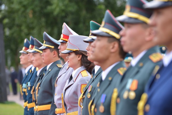 На территории вокруг главного флагштока (этно-мемориальный комплекс "Атамекен") проходит торжественная церемония поднятия Государственного флага, вручения офицерских погон курсантам и запуска праздничных мероприятий, посвященных празднованию Дня столицы с участием Президента Казахстана Назарбаева.