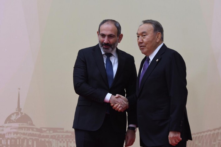 В мероприятии принимают участие Президенты: Казахстана - Нурсултан Назарбаев, России - Владимир Путин, Беларуси - Александр Лукашенко, Кыргызстана - Сооронбай Жээнбеков, Таджикистана - Эмомали Рахмон, Армению представляет исполняющий обязанности премьер-министра Никол Пашинян.