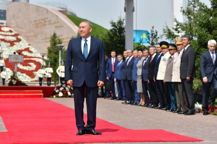Нурсултан Назарбаев принял участие в торжественной церемонии поднятия государственного флага в Астане, в ходе которого дал старт празднованию Дня столицы, передает корреспондент Tengrinews.kz.