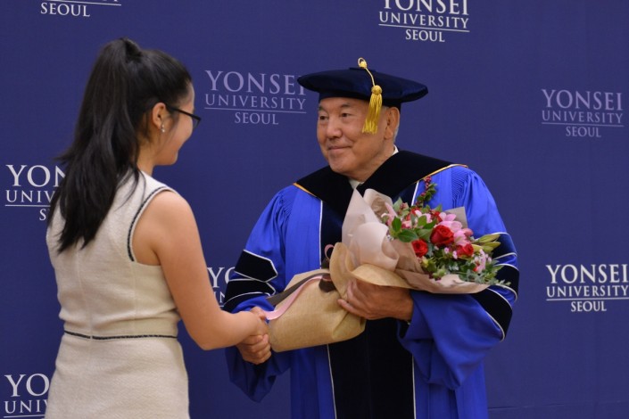 Звание почетного доктора философских наук ему присвоили в университет "Ёнсей".