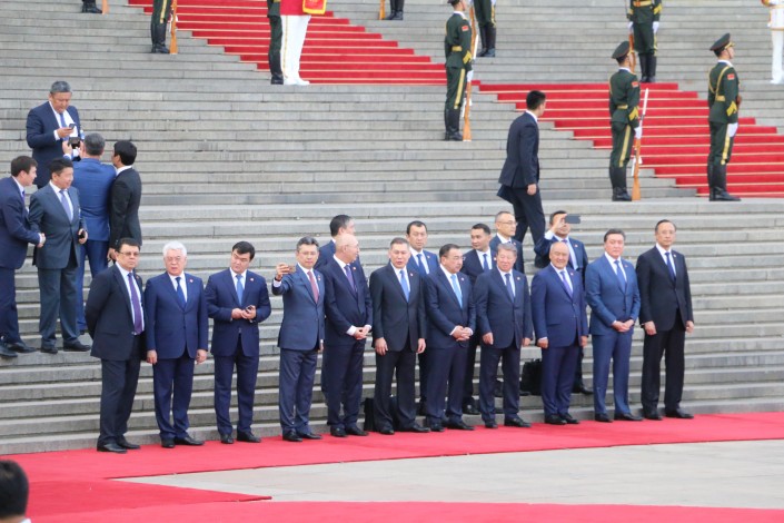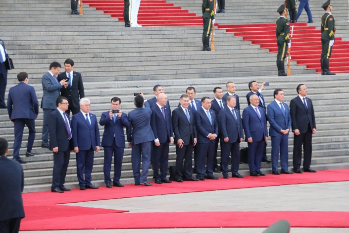 В ожидании выхода глав государств члены казахстанской делегации делали селфи. К примеру, министр финансов Бахыт Султанов фотографировал себя на фоне главного политического здания Китая.