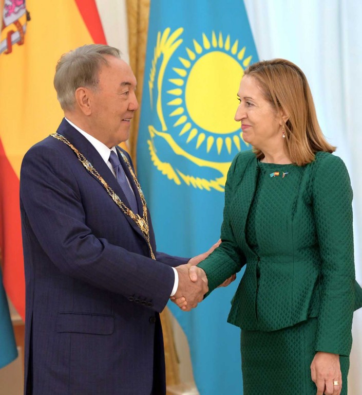 Председатель Конгресса депутатов Королевства Испания Ана Пастор наградила Нурсултана Назарбаева орденом Изабеллы Католической от имени Короля Испании Филипе VI, передает Tengrinews.kz со ссылкой на сайт Акорды.