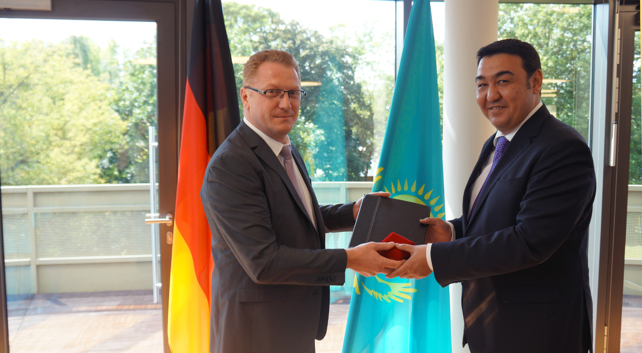 Награда от имени бывших граждан Казахстана немецкой национальности, проживающих в Германии, была вручена послу РК в Германии Болату Нусупову. Передавая Золотой знак и Почетную грамоту депутат Бундестага Генрих Цертик, председатель Союза переселенческих организаций Германии Вальдемар Айзенбраун и председатель Общества немцев Казахстана Анатолий Граф отметили, что "около миллиона бывших граждан Казахстана немецкой национальности поддерживают семейные, деловые и культурные связи с Казахстаном, страной, где они родились, выросли, получили образование, и которой они сегодня очень гордятся". Казахский народ, по их утверждению, в самые трудные времена по-братски тепло принял немецкий народ и это никогда не может быть забыто.