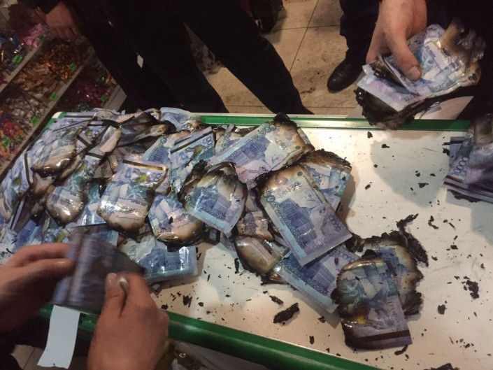 "В результате покушения на преступление, при котором использовалось газосварочное оборудование, частично сгорели купюры достоинством пять и десять тысяч тенге на общую сумму более 4,8 миллиона тенге", - говорится в сообщении ДВД Алматинской области.