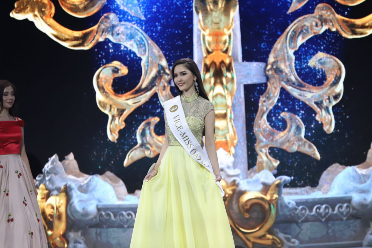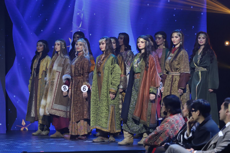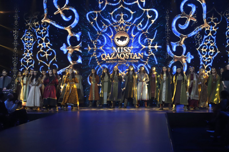 Во время финального шоу самые красивые девушки Казахстана продефилировали в стилизованных национальных костюмах, нарядах отечественного дома моды ARUNAZ и платьях голливудского бренда Sherri Hill.