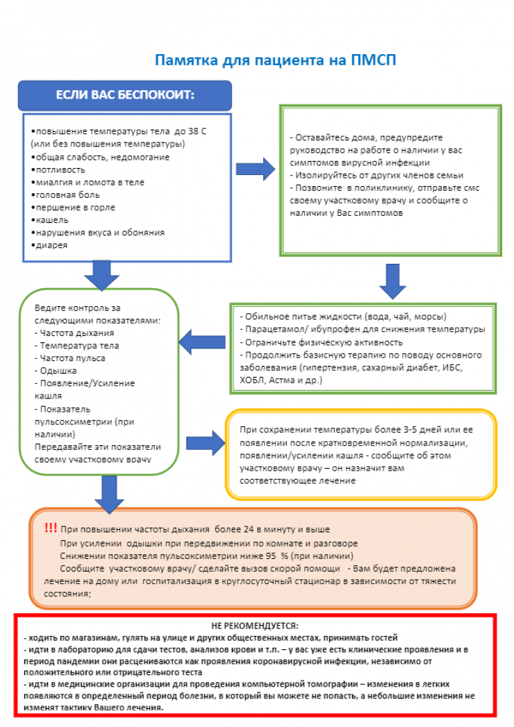 • идти в медицинские организации для проведения компьютерной томографии, так как изменения в легких появляются в определенный период болезни, в который вы можете не попасть, а небольшие изменения не изменят тактику лечения.