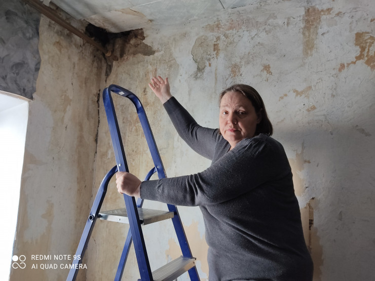 "Когда произошло обрушение в ванной комнате, меня по времени разделило 5-7 минут, как я оттуда вышла. Сквозная дыра, очень страшно. Когда вот было потепление, опять здесь все потекло со стен, стоит невыносимый запах. Мы сидим, просто ждем, когда на нас это все обрушится, потому что расселить нас акимат не может без команды свыше, по крайней мере, они нам так говорят", - рассказывает жительница дома Ольга Левченко.