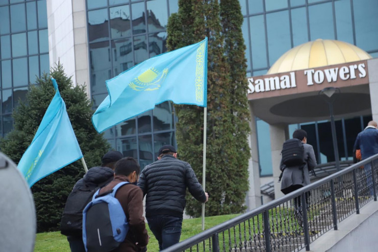 Недовольные выходом "Бората-2" алматинцы пришли к консульству США Фото ©Алихан Сариев