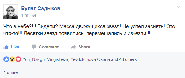 Напомним, ранее аналогичный инцидент произошел в Алматы в декабре 2014 года. Тогда в небе над городом также засняли огни. Комментируя инцидент, в Минобороны упомянули о запуске ракеты с "Байконура" в тот же день, когда необычное явление было зафиксировано. Однако между собой эти два события в министерстве не связывают. Как сообщили в ответе на официальный запрос Tengrinews.kz, с космодрома "Байконур" произвели запуск межконтинентальной баллистической ракеты РС-18, которая вывела на орбиту аппарат "Кондор-Э № 2". Запуск состоялся в 10.43 по времени Астаны 19 декабря. Это было за восемь часов до предполагаемого появления огней в небе над Алматы. Ракета взлетела в северном направлении с наклонением орбиты 74,9 и высотой в 500 километров.