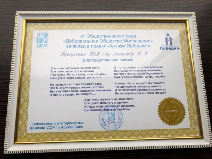 После подопечные центра передали благодарственное письмо председателю Комитета национальной безопасности Кариму Масимову.