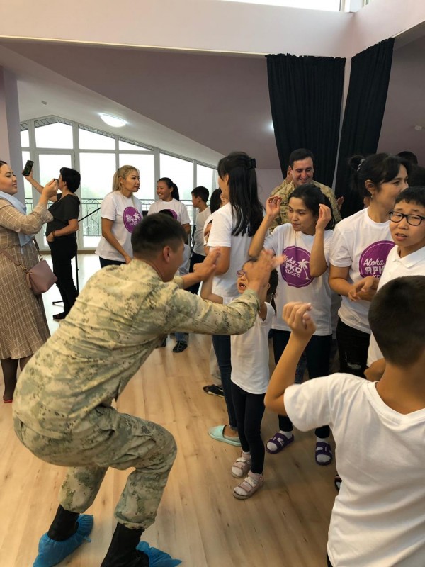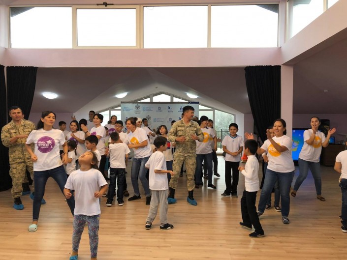 Мероприятие завершилось совместным флешмобом детей и представителей кинологического центра ПС КНБ РК.