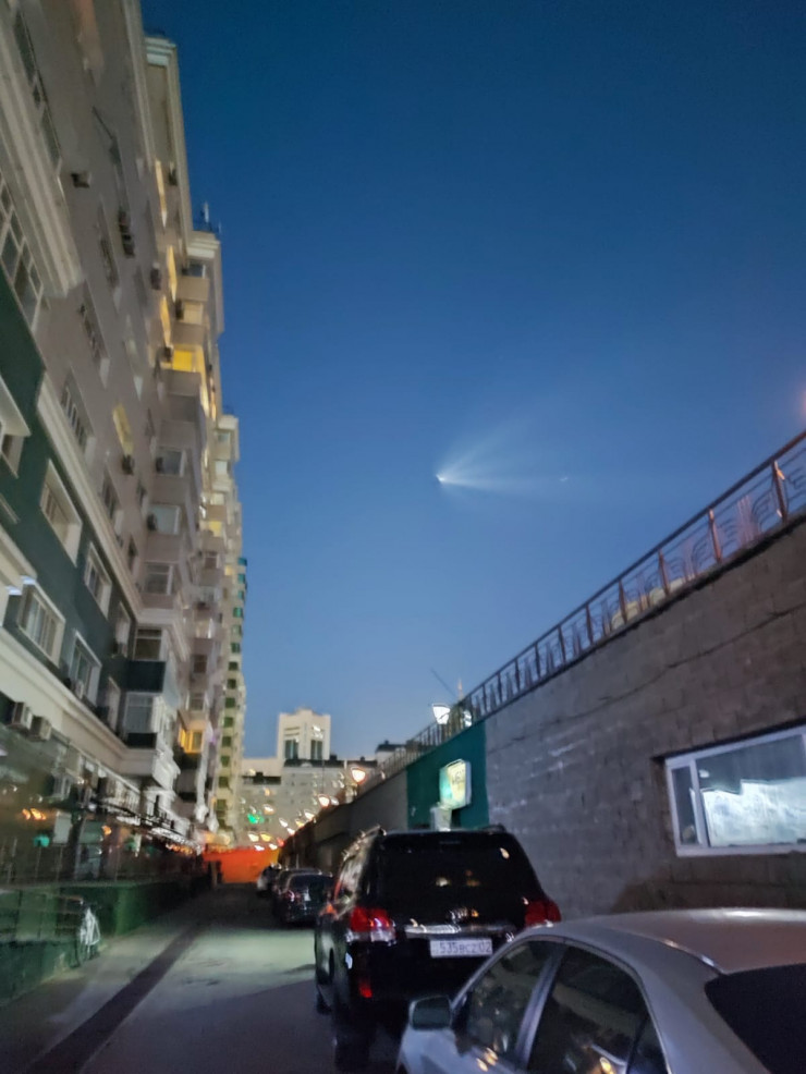 В комментариях пользователи начали выдвигать различные версии происхождения светящегося объекта. Многие сошлись во мнении, что это след от запуска рекеты с Байконура.