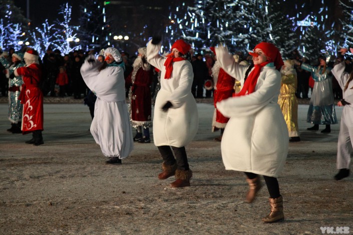 На центральной площади Петропавловска зажгли огни на 18-метровой елке. Она украшена игрушками и 60 светодиодными гирляндами. В церемонии принял участие аким Северо-Казахстанской области Ерик Султанов. Аким области вместе с детьми нажал на символическую кнопку, и чудо свершилось. Елка замигала разноцветными гирляндами. Все это сопровождали взрывы фейерверков и хлопушек с конфетти.