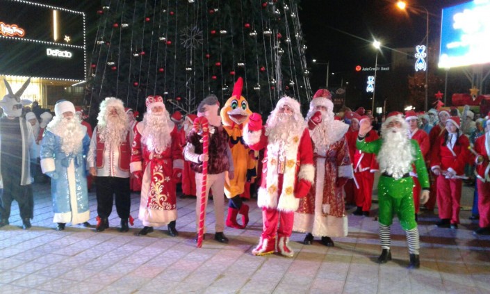 В Усть-Каменогорске главная городская елка зажглась еще на минувших выходных. Традиционную акцию по торжественному зажжению огней на новогоднем дереве "Елочка, гори!" предварил парад Дедов Морозов. Мероприятия, посвященные празднованию, прошли на площади Республики перед зданием областного акимата, где и установлена елка. Многие примерили разнообразные костюмы Дедов Морозов и Снегурочек. В торжестве приняли участие больше сотни новогодних персонажей. А после того как огни на елке были зажжены, начался праздничный концерт.
