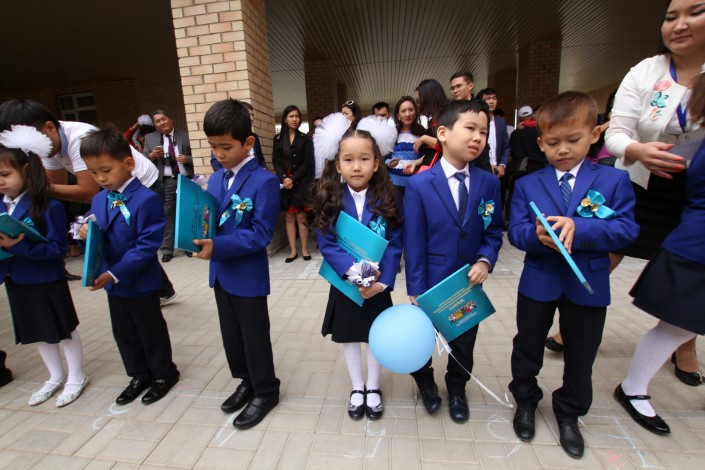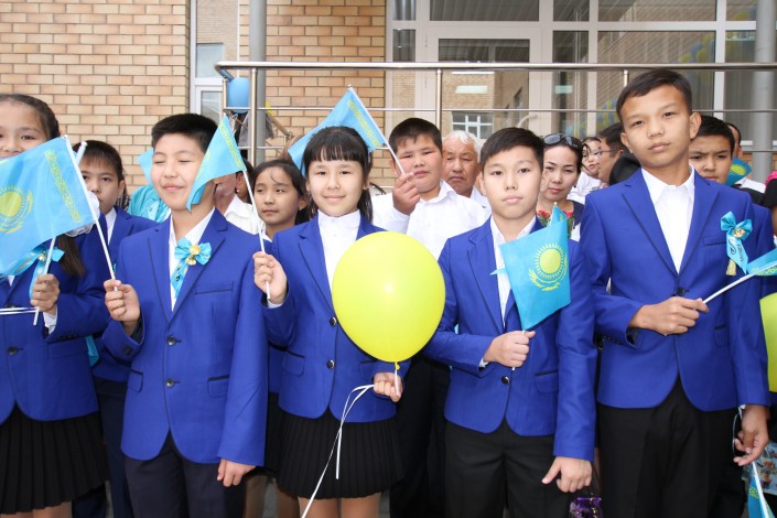 В этом году в первый класс пошли 340 тысяч маленьких казахстанцев. Каждый из них к первому учебному году в своей жизни получил подарок от имени Президента Казахстана Нурсултана Назарбаева - книгу "Mенің отаным - Қазақстан". Всего в Казахстане сегодня открыли свои двери 7,5 тысячи школ.