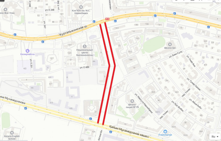 "В столице завершилось строительство участка улицы Е355 от Коргалжинского шоссе до улицы Кайыма Мухамедханова. Открытие проезда на данном участке позволит улучшить транспортное обслуживание жителей жилых комплексов "Кристалл", "Нұрлы Ұя", "Ерке", "Аркада", "Сенiм", Copengangen и других, разгрузить существующую улично-дорожную сеть и обеспечить устойчивое функционирование дорожной сети Нур-Султана в целом", - говорится в сообщении.