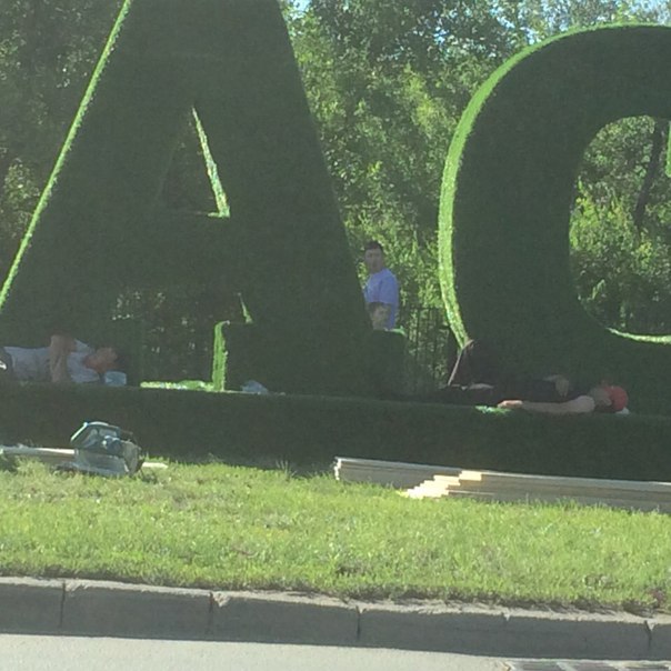 На этом фото, опубликованном Аятом Сепбаевым в ВКонтакте видно, что жители столицы не только фотографируются на его фоне, но и отдыхают в его тени, спасаясь от дневного зноя.
