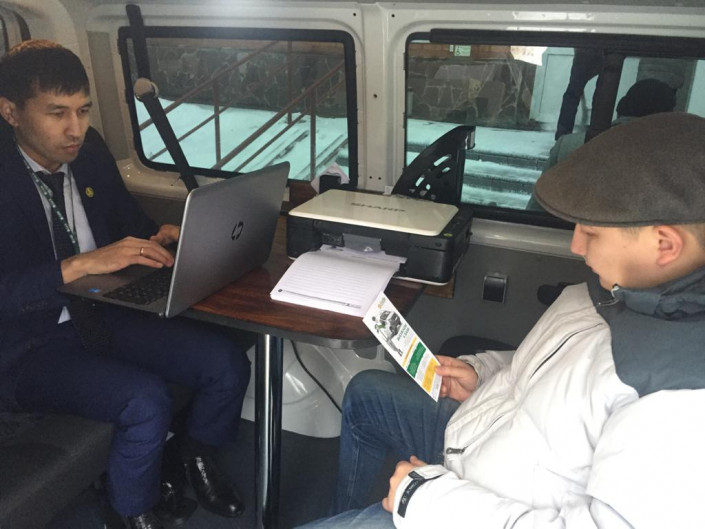 Отметим, что выезд мобильного офиса в районы производится по предварительно запланированному графику, а все маршруты согласовываются с местными исполнительными органами, которые, в свою очередь, оповещают жителей о приезде "Мобильного офиса".