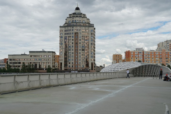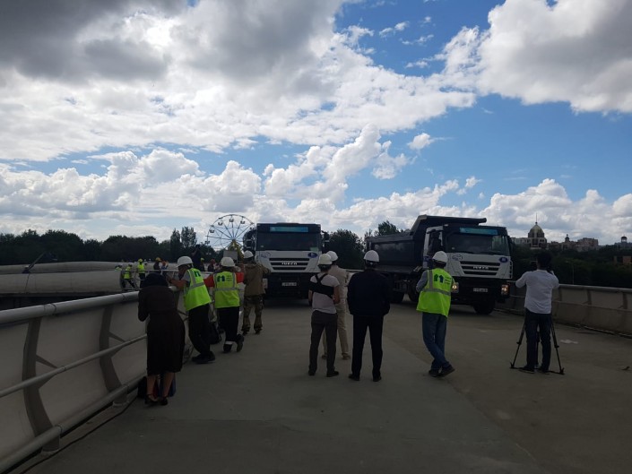 Новый пешеходный мост в Астане проверили на прочность Фото Турар Казангапов ©