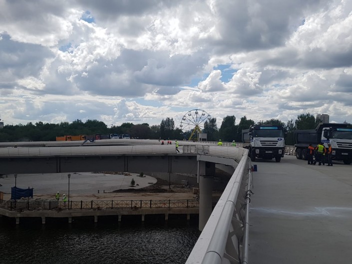 На мосту провели статические и динамические испытания. По его полотну прогнали 12 десятитонных грузовиков. Это событие, как отметили в BI Group, стало завершающим этапом контроля качества строительно-монтажных работ перед его оценкой итоговой приемочной комиссией.