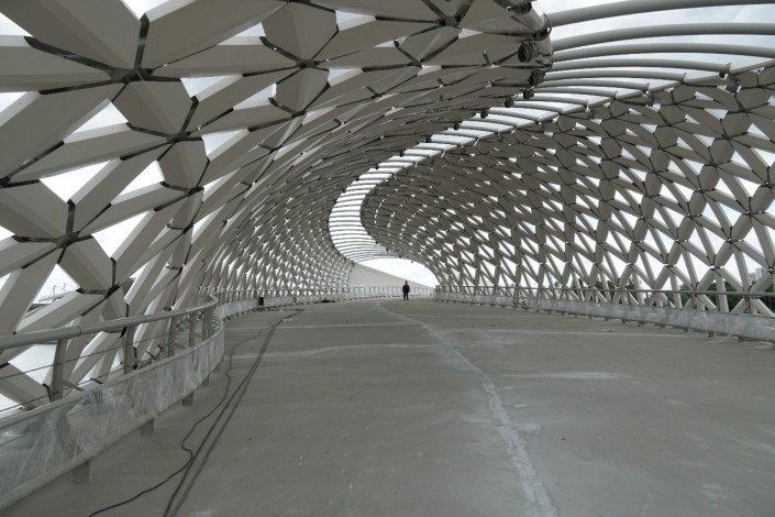 "Если посмотреть сверху на мост, то оболочка напоминает форму рыбы, это символ Атырауской области. Такого моста в Казахстане нет, это очень щедрый подарок", - сказал директор инфраструктурной дирекции компании BI Group Серик Тулебаев журналистам.