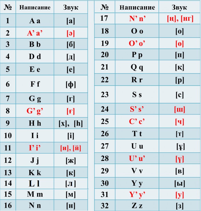 Отметим, что в новом варианте отсутствуют апострофы и появились акуты (штрихи над буквами). Изменено написание букв Ә, И, Й, Ғ, Ң, Ө, Ү, У на латинице, а также введены диграфы (sh, ch).