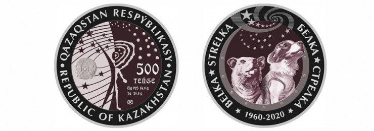 Эти монеты посвящены 60-летию полета в космос советских собак-космонавтов Белки и Стрелки с космодрома Байконур на корабле "Восток", сообщает Нацбанк.