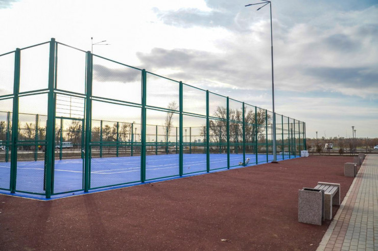 Вторая зона – для спортивного отдыха. Территорию оснастили баскетбольной площадкой, футбольным полем, волейбольной площадкой, теннисным кортом, площадкой для воркаута и местом для занятия йогой. Все спортивные площадки огорожены.