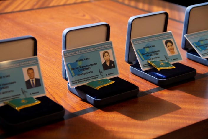 Глава Центризбиркома Берик Имашев вручил удостоверения и нагрудные знаки впервые назначенным депутатам. После регистрации депутаты приступают к своим полномочиям.