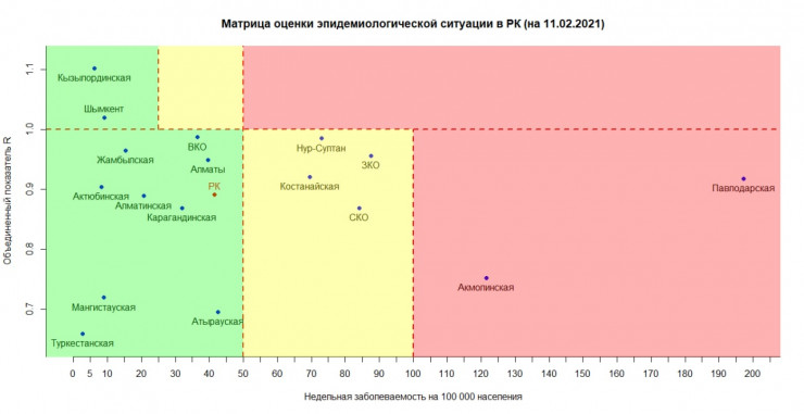 Так, на 11 февраля матрица оценки эпидемиологической ситуации в регионах страны выглядит следующим образом:
