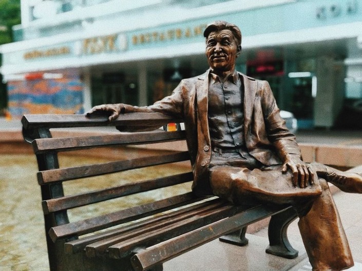 Алматы Рустем называет городом памятников - их снимки занимают особенное место в его папке в компьютере. Автор подмечает, что многие скульптуры в городе "сидят", и тут же сам находит этому объяснение: почему бы нет? Зачем куда-то спешить, когда можно присесть и насладиться чудесной алматинской погодой.