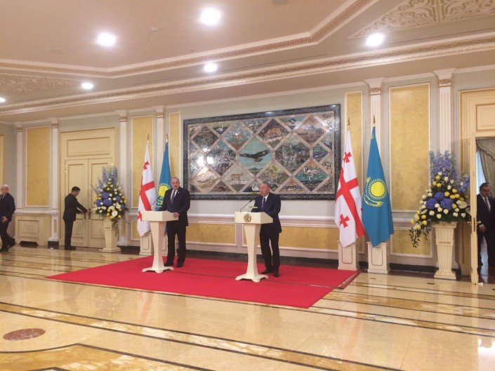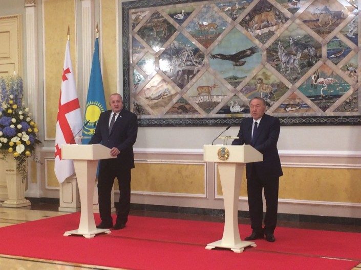 "Есть сейчас возможность сделать так же, как и Казахстан, Грузию транзитным государством в связи с развитием Шелкового пути "Один пояс, один путь". Через Казахстан и через Грузию выход в Европу, выход на Черное море - очень важно. И транспортные коридоры по газу и нефти, которые проходят через Кавказ, через Грузию, очень важны. В связи с этим мы говорили о важности для Казахстана Батумского терминала и Батумского порта, которыми владеют казахстанские компании, обсудили вопросы, чтобы проблемы, которые есть, решить. Если мы по тарифам между министерствами договоримся, этот путь может стать самым выгодным как для Китая, Казахстана, так и для Грузии, поднимет транзитные возможности нашей страны", - сказал Нурсултан Назарбаев на совместном заявлении глав государств.