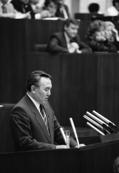 Так дальше продолжаться не может. Я убежден, недалек тот день, когда Казахстан как суверенное государство будет строить отношения с Союзом ССР и другими республиками на договорных принципах и, выработав самостоятельную сильную политику, начнет энергично возрождаться", - говорится в тексте первого выступления Назарбаева.