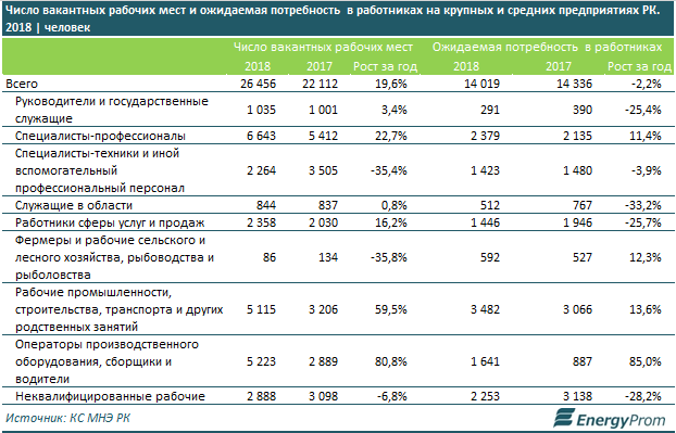Число вакансий в крупных и средних компаниях Казахстана увеличилось на 20 процентов, что свидетельствует о нарастании кадрового голода. Об этом сообщают аналитики Energyprom.kz.