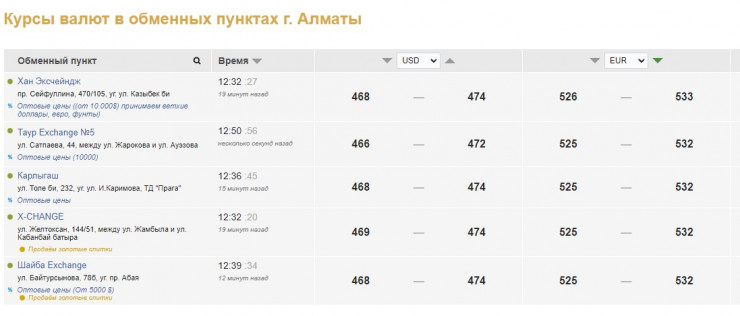 По данным Kurs.kz, на 12.50 курс продажи доллара в обменниках Алматы достиг отметки 474 тенге. Курс покупки - 469 тенге.