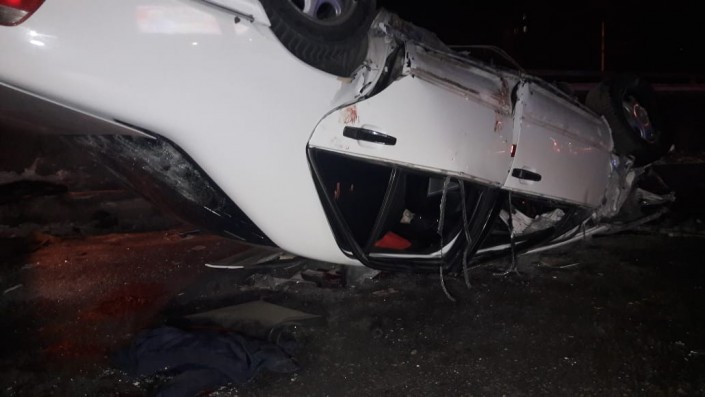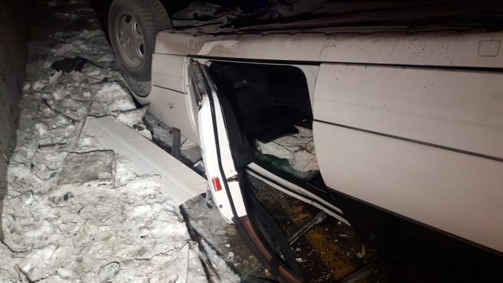 Авария произошла на пересечении улиц Кабдолова и Саина. По словам очевидцев, водитель Mercedes, двигавшийся на запад по Кабдолова, не справился с управлением и на полном ходу врезался в бетонное ограждение. От удара автомобиль перевернулся.