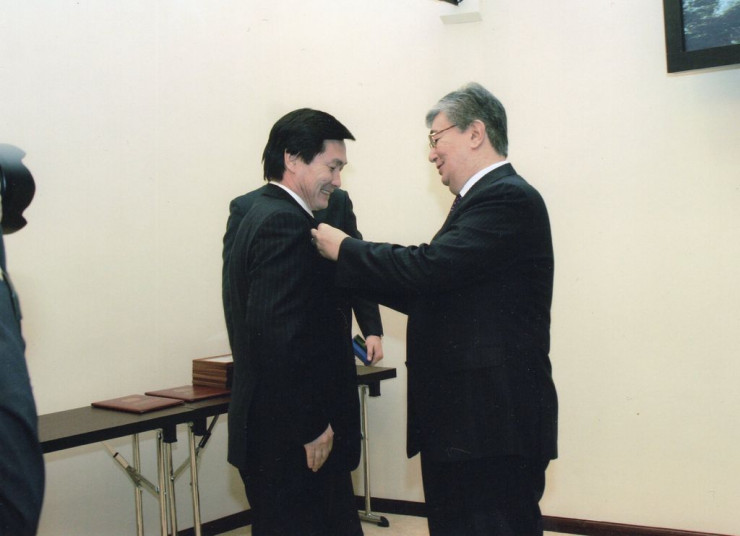 2008 жыл. ҚР Еңбек сіңірген қайраткері атағын беру рәсімі. © Мақат Садықтың жеке мұрағатынан