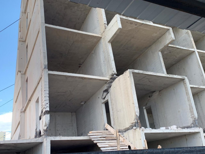 "Изначально мы подошли к демонтажу – снимать поплитно, подбивая бетон и разрезая арматуру. После того как мы сняли этаж, полтора, пошли поперечные трещины. Мы в тот же момент сняли людей сверху, так как было небезопасно, и подошли к методу направленного сноса".